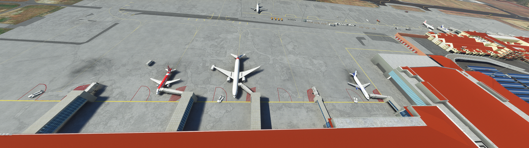 This package contains handmade terminals hangars and ground scenery. Terminal 3 contains interior details and all buildings feature physical lights. It is pretty detailed.